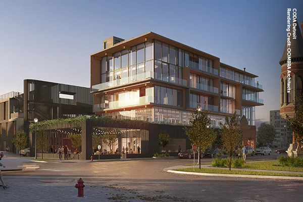 • Project: CODA Detroit. Building Type: Mixed-Use Residential. Project Team: OOMBRA Architects, Brush Park Properties / IN Development Partners, JDH Engineering, Britt Peters and Associates, and AM Higley.