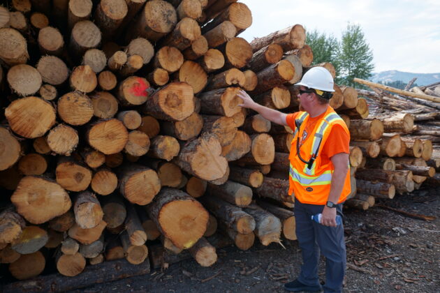 Vaagen Fibre manager Dan MacMaster showing CFI around the Midway, B.C., facility in August 2022. Photo: Annex Business Media.