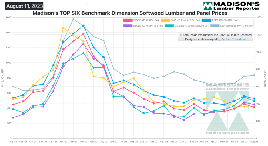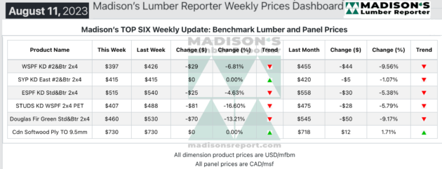 Mid-August lull sees decrease in lumber prices: Madison’s