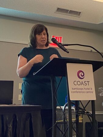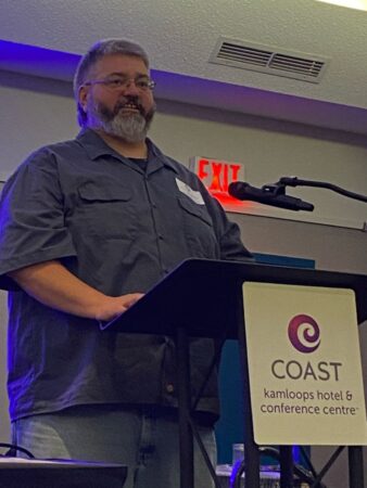 Reggie Hewitt, instructor at Thompson Rivers University’s (TRU) Williams Lake saw filing training centre closed out the conference with some updates about the sawfiler program and a call for donations.