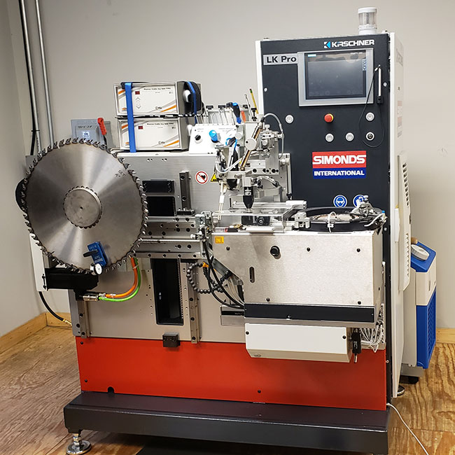 The LK-Pro2 is the ideal machine for both automatic saw tip removal and automatic retipping for mid-size to large sawmills looking to support their saw filing team. With a tipping speed of 13 tips per minute and its user-friendly icon-based CNC interface, robust design and construction, compact size and patented non-vibrating clog-free tip feed and sort bowl, the LK-Pro2 is setting a new standard in what North American sawmills should expect from their automatic saw tipping machine. Available options include: the innovative tip removal function, automatic laser driven diameter detection, Vee Tip capability and new robot load/unload capability.