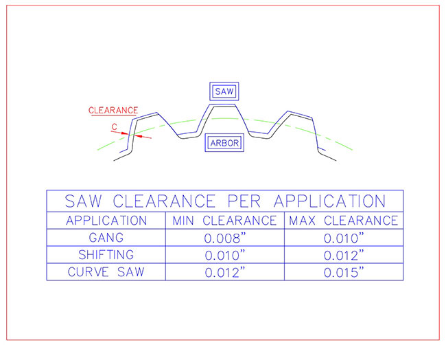 Every saw filer may have their own standards for how much backlash a saw to arbor should have. Below is a good standard if you do not have your own established numbers: