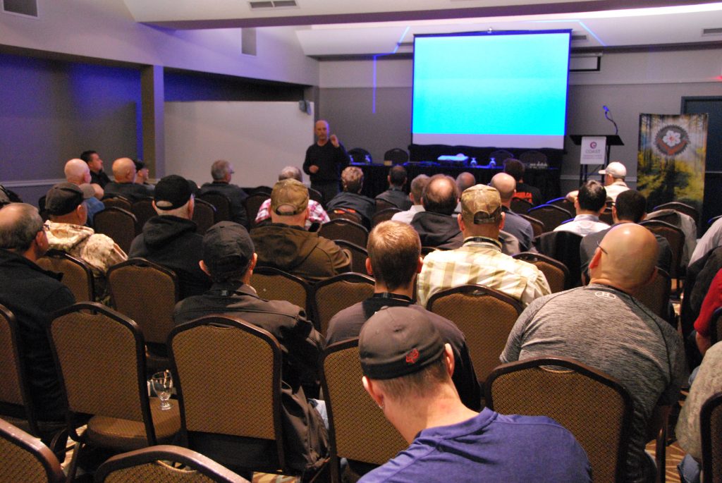 Sawfiler instructor Tony Narciso ended off the day with an update of the Williams Lake saw filing training centre, run by Thompson Rivers University. The centre has held eight classes since it started up in 2013.