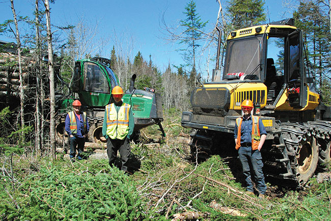 From left, Dave Boutilier, Mark Bannerman, and Duncan Cameron on a harvest block in central Nova Scotia in early May.