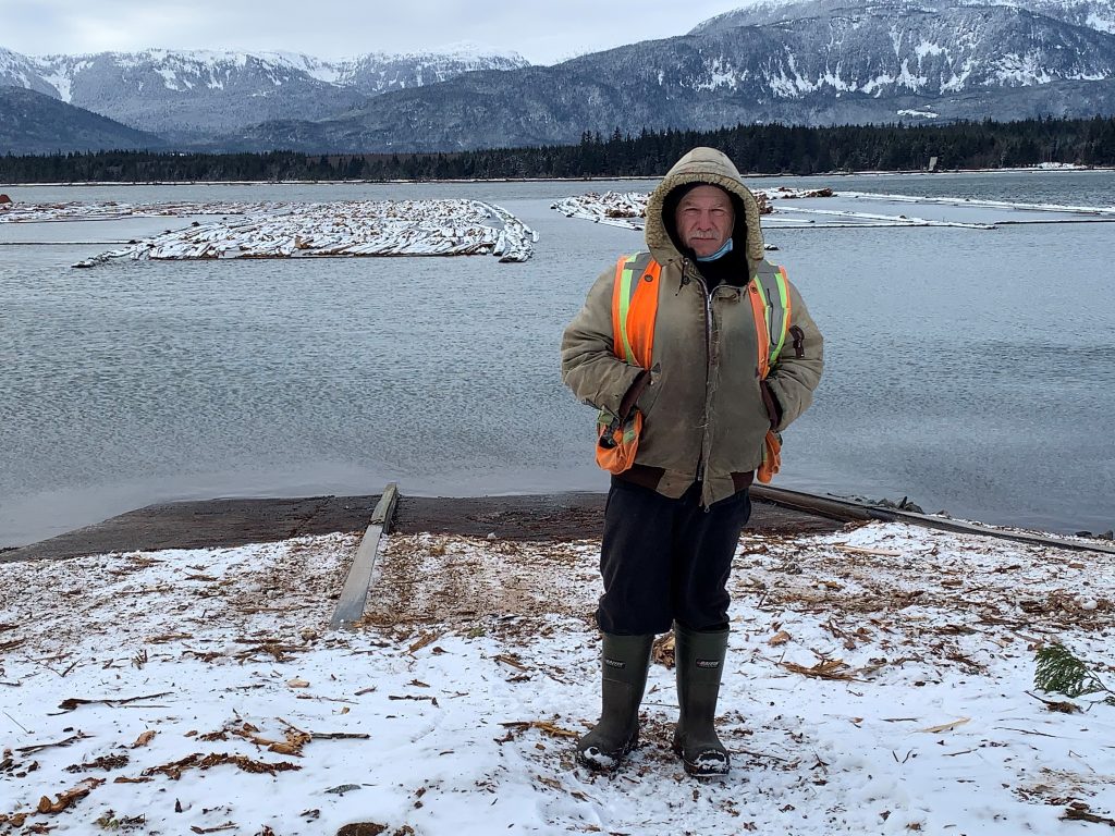Allwest Trading scaler, Moe MacLean, at Minette Bay with NorthPac logs destined for a coastal pulp mill. Photo courtesy FESBC. Utilization of residual wood fibre by coastal pulp mills has reduced pile burning and greenhouse gas emissions from the forested areas near Hazelton in northwest British Columbia. This work has contributed significantly, not only to the local and provincial economies, but also environmentally to assist in the achievement of British Columbia’s and Canada’s climate change targets. The project was supported by a $484,164 grant from the Forest Enhancement Society of BC (FESBC).