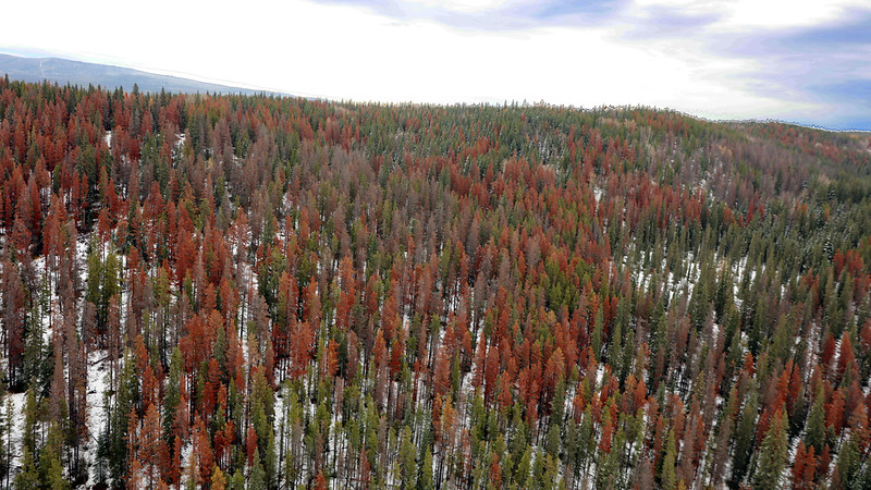 Aerial surveys to detect lodgepole pine trees killed by mountain pine beetles completed in August covered 6.88 million hectares. These surveys focus on specific areas where beetle populations are still actively killing trees.