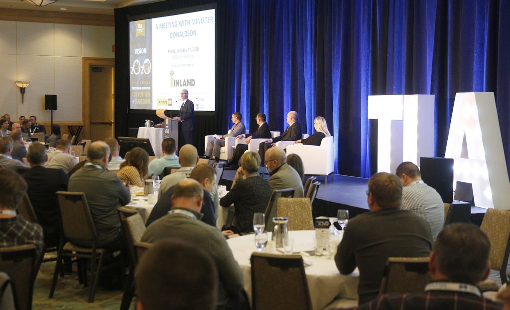 Truck loggers and other members of B.C.’s forest industry listen to a speech from (former) B.C. Forests Minister Doug Donaldson before a Q&A with attendees of the 2020 Truck Loggers Convention in Vancouver. Photo by Adam Kveton. The Truck Loggers Association (TLA)’s 2020 convention in Vancouver from Jan. 15-17 sought to provide attendees with a clearer vision of what’s to come during a very difficult time for the lumber industry in B.C.