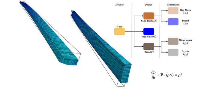 Graphic: Winston Mmari/Linnaeus University Wood is a naturally growing material that has been used as building material for centuries. However, its high moisture content makes it difficult to use as load-bearing structures without drying processes. In a new dissertation in building technology, Winston Mmari studies the interaction between heat, moisture, and transport mechanisms in wood and develops a model to predict the behaviour of wood under mechanical load at different moisture and temperature conditions.